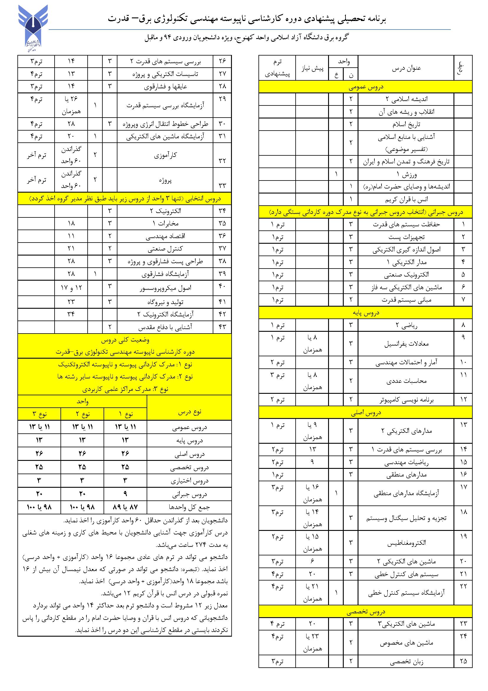 کارشناسی ناپیوسته مهندسی برق – قدرت ورودی 94 و قبل