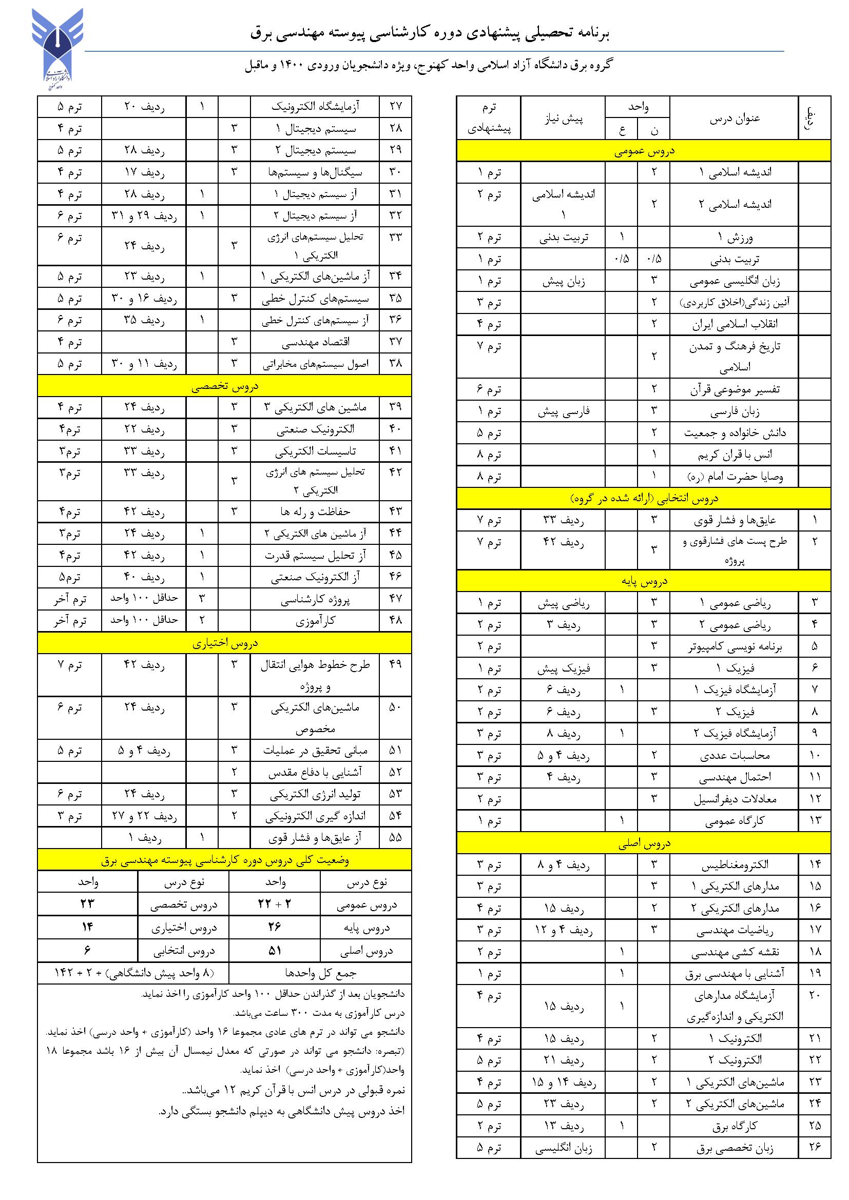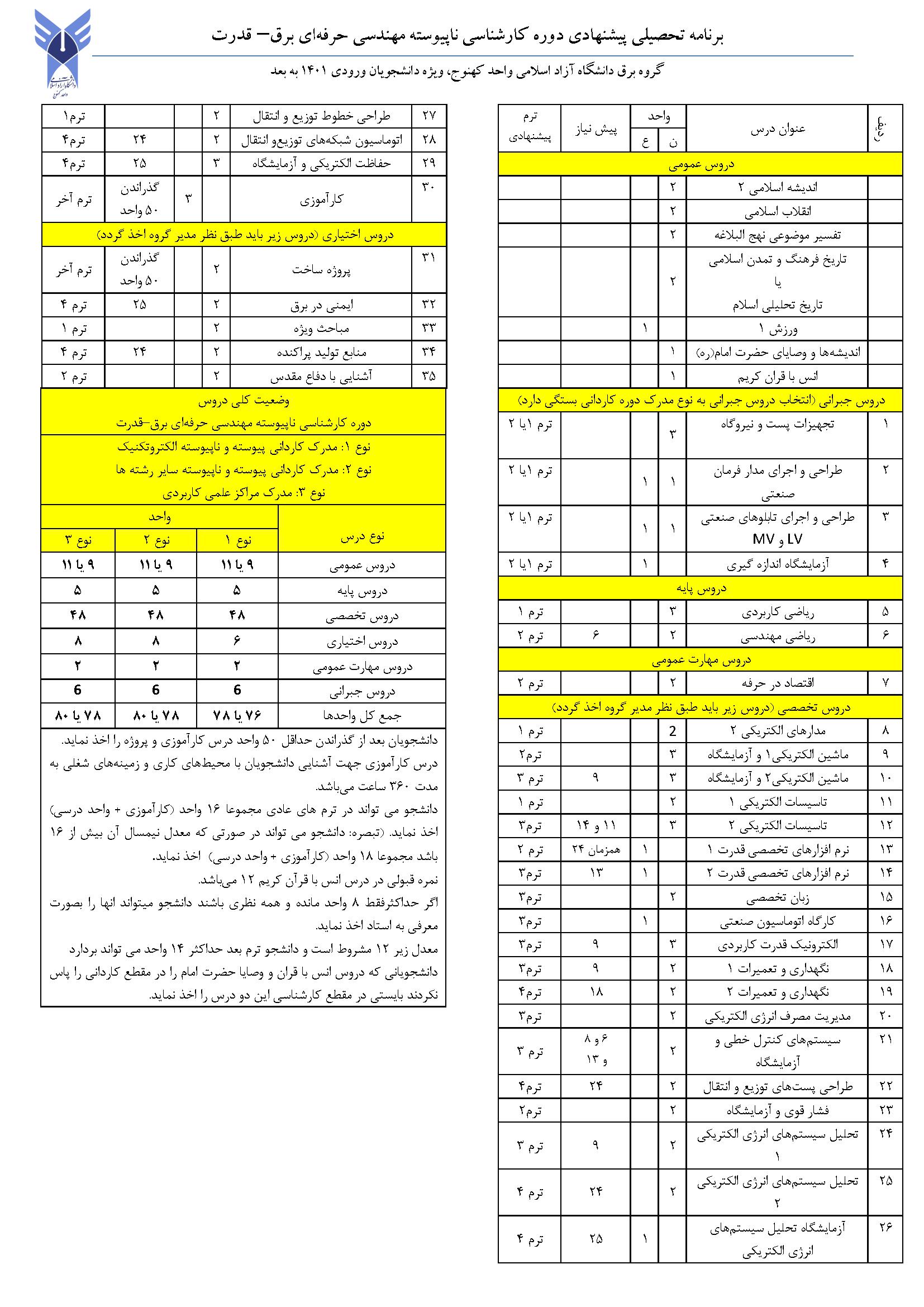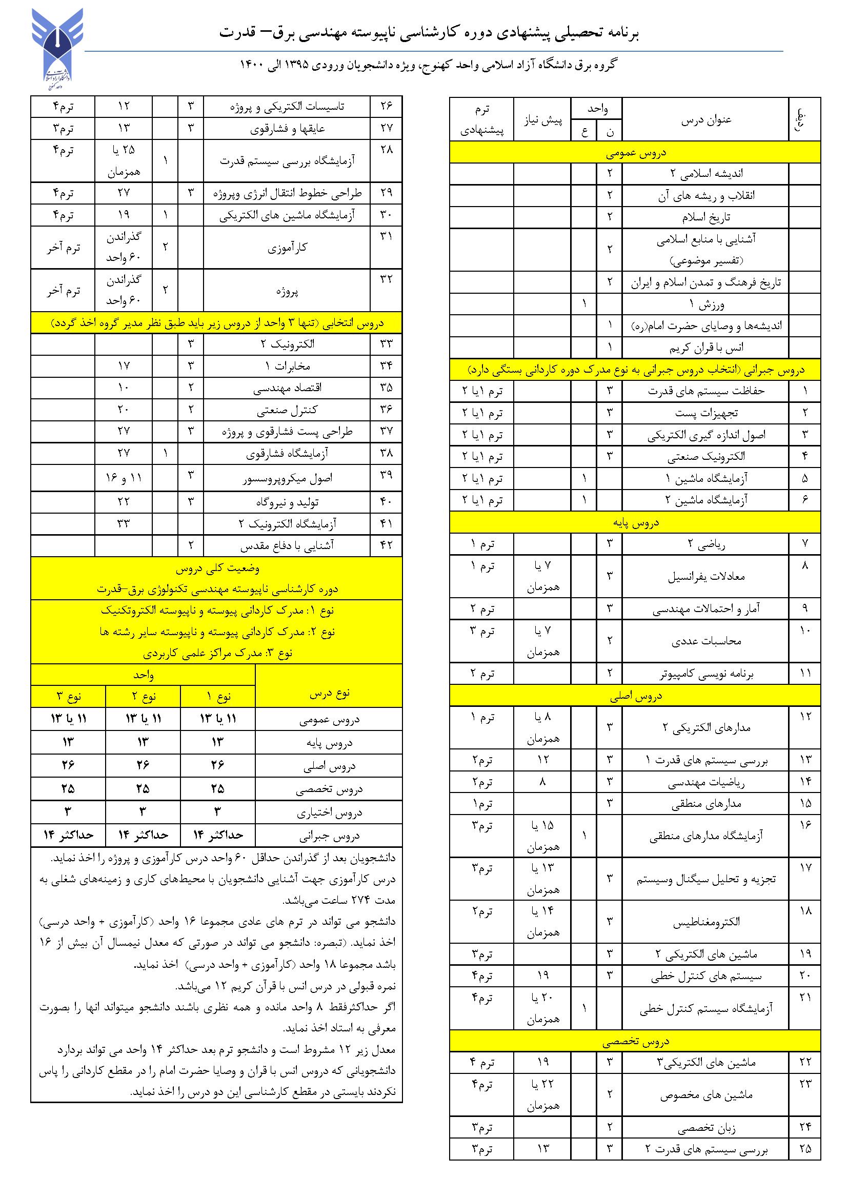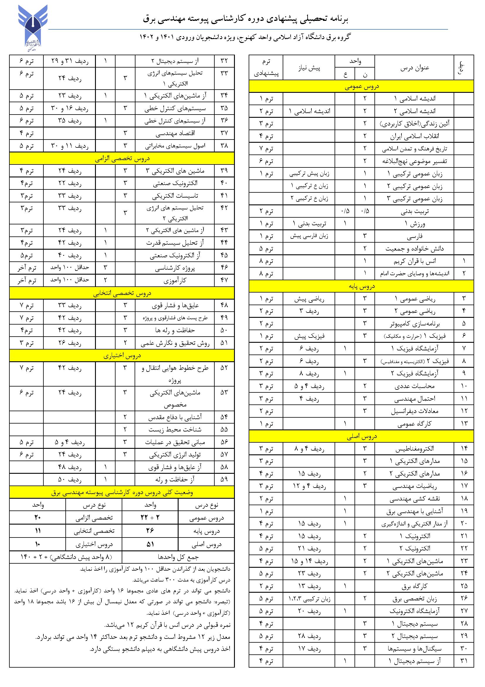 کارشناسی پیوسته مهندسی برق ورودی 1401 و 1402